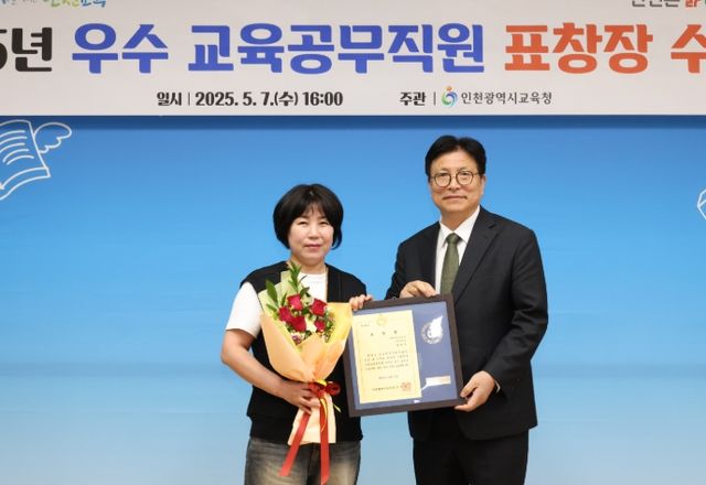 올해로 5회째를 맞이한 이번 표창은 교무실무사, 조리실무사 등 다양한 직종의 소속 교육공무직원 중 학교 현장에서 맡은 바 직무를 성실히 수행하며 인천 교육 발전에 기여한 우수 직원을 대상으로 진행됐다.