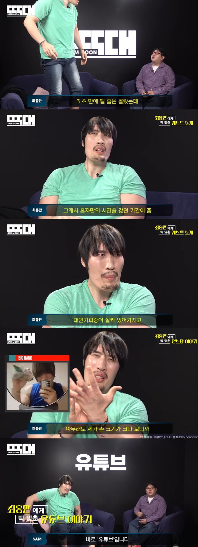 이에 최홍만은 "제가 손 크기가 크다보니 사람들이 손 크기 비교하는 걸 좋아하더라"라며 자신만의 콘텐츠를 이야기했다.