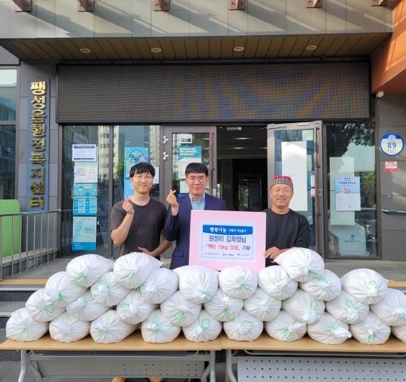 이에 이근영 팽성읍장은 “평소에도 마을과 이웃을 위해 묵묵히 헌신하시고 지역 사회의 어려운 이웃을 위해 따뜻한 나눔을 실천하신 김학정 님과 김용기 님께 감사드린다”라며, “기부하신 백미는 더욱 힘든 시간을 보내고 있는 취약계층에 큰 힘이 될 것”이라며, “소중한 성금을 지역 내 꼭 필요한 곳에 전달될 수 있도록 최선을 다하겠다”라고 전했다.