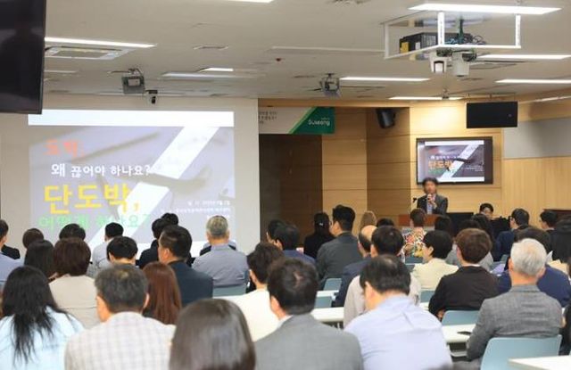 | ▲ 지난 2일 수성구청 대강당에서 2025년 직원 대상 단도박 통합 교육을 진행했다. |