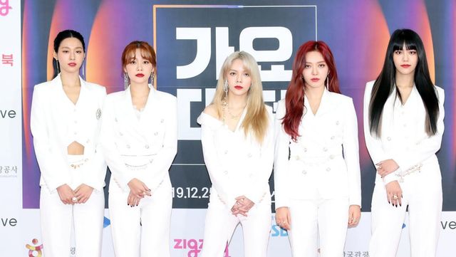 에이오에이(AOA) 설현(왼쪽부터), 유나, 지민, 찬미, 혜정이 2019년 서울 고척돔에서 열린 ‘2019 SBS 가요대전’ 포토콜 행사에 참석해 포즈를 취하고 있다. / 뉴스1