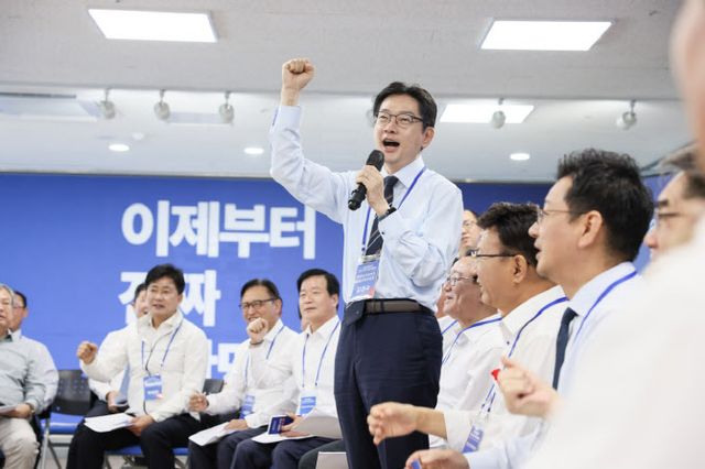 김 총괄위원장은 이날 오전 10시께 민주당 울산시당 민주홀에서 열린 울산 선거대책위원회 출범회의에 참석해 “대법원의 내란으로 이재명 후보가 끝까지 선거를 치를 수 있을까 하는 당원들의 걱정이 많았지만 상황이 이제는 일단락됐다”며 “그간의 과정은 대법원조차도 국민을 이길 수 없다는 걸 확인시켜줬다”고 밝혔다.