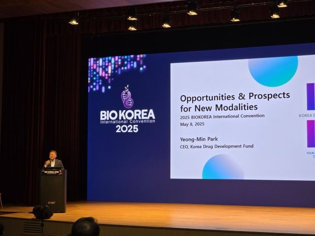 박영민 국가신약개발사업단 단장이 8일 서울 삼성동 코엑스에서 열린 '바이오 코리아 2025' 행사에서 신규 모달리티 관련 발표를 진행하고 있다. 사진=이병현 기자
