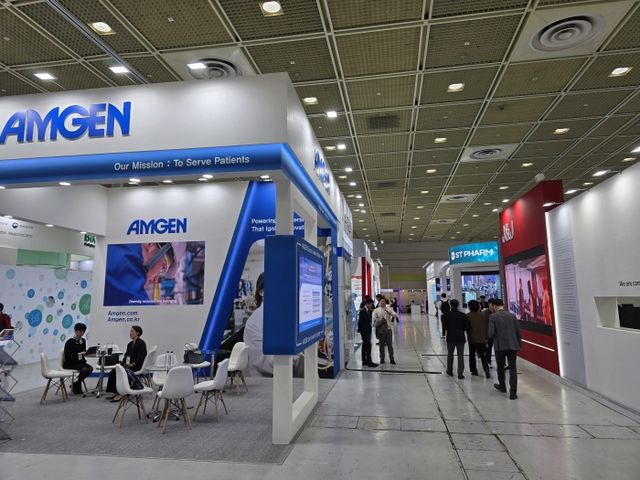 8일 서울 삼성동 코엑스에서 열린 '바이오 코리아 2025' 전시장에 암젠, J&J 등이 부스를 꾸린 모습. 사진=이병현 기자