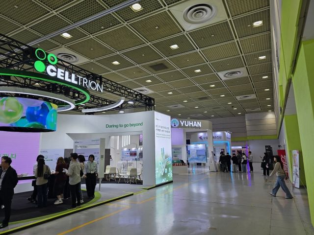 전시관은 20개국 323개사(해외 117개사)의 429개 부스로 구성됐다. 전시장 입구 메인부스 위치에는 올해 처음 부스를 연 셀트리온과 유한양행이 나란히 있어 눈길을 끌었다. 앞서 개막일인 지난 7일 행사에 참여한 박민수 복지부 차관, 차순도 한국보건산업진흥원 원장 등 내외빈 역시 개막식이 끝나고 셀트리온 부스에 가장 먼저 들른 것으로 파악된다.