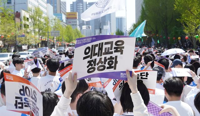 의대협은 “국가의 허가 없이는 의대생의 개인 휴학도 불가능하다고 말하는 교육부는 40일째 제적을 하겠다며 협박한다”며 “학칙의 엄정한 적용은커녕 대학의 학교 규칙을 심각하게 훼손해 교육의 본질마저 왜곡한 행태”라고 꼬집었다.