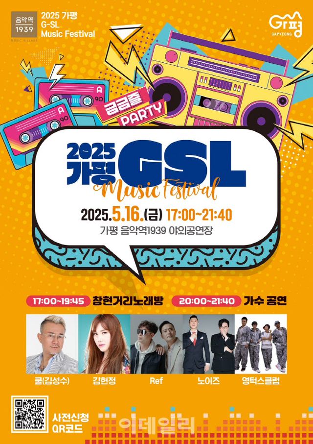 경기 가평군은 오는 16일 음악역1939 야외광장에서 ‘가평 Saturday 라이브(GSL)’ 공연을 개최한다고 8일 밝혔다.