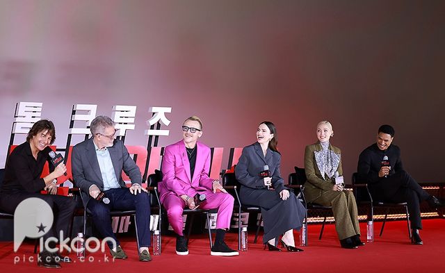 8일 오후 서울 송파구 롯데시네마 월드타워점에서 영화 '미션 임파서블: 파이널 레코닝' 프레스 컨퍼런스가 열려 크리스토퍼 맥쿼리 감독을 비롯해 톰 크루즈, 헤일리 앳웰, 사이먼 페그, 폼 클레멘티에프, 그렉 타잔 데이비스가 참석했다.