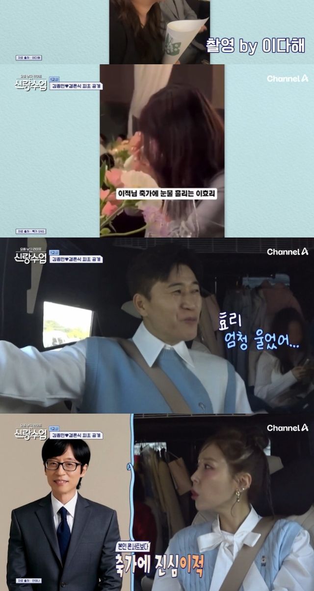 이어 김종민은 "난 축가도 너무 좋았다"며 이적과 린의 축가를 언급했고, 심진화는 "난 '다행이다' 들으며 오열을 했다. 진짜 좋았다"고 증언했다.