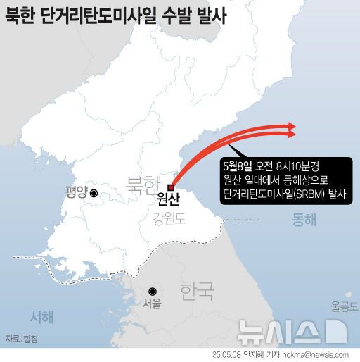 합동참모본부에 따르면 우리 군은 이날 오전 8시 10분께부터 9시 20분께까지 북한 원산 일대에서 동해상으로 발사된 다양한 종류의 단거리탄도미사일(SRBM) 수발을 포착했다. 북한의 미사일은 최대 약 800㎞를 비행한 후 동해상에 탄착했다.