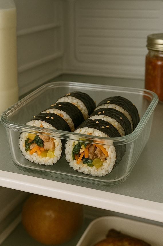 밥에 식초와 소금을 적절히 섞어 초밥 스타일로 만들면 냉장 보관 후에도 밥이 딱딱해지는 속도를 늦출 수 있다. 식초는 밥의 전분 노화를 지연시키는 효과가 있기 때문이다. 또한 오이나 단무지처럼 수분이 많이 나오는 재료는 물기를 꼭 짜서 넣고, 상온 보관이 가능한 짧은 시간 안에 섭취하는 것을 기본 원칙으로 삼아야 한다. 김도 너무 두껍거나 오래된 것을 사용하면 시간이 지날수록 쉽게 질겨지기 때문에 신선한 김을 고르는 것이 중요하다.
