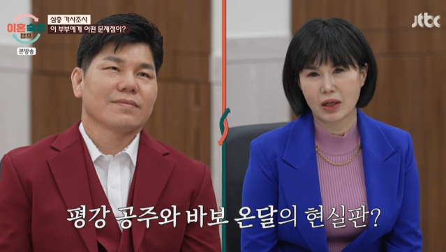 이들은 결혼 15년차로 밝혔는데, 아내는 “북한 평양에서 왔다. 제가 신청했다. 북한 말로 하면 평강 공주와 바보 온달인데 뒤통수를 맞았다”고 말했다. 그러자 남편은 “문제가 없는데”라고 반박했다.