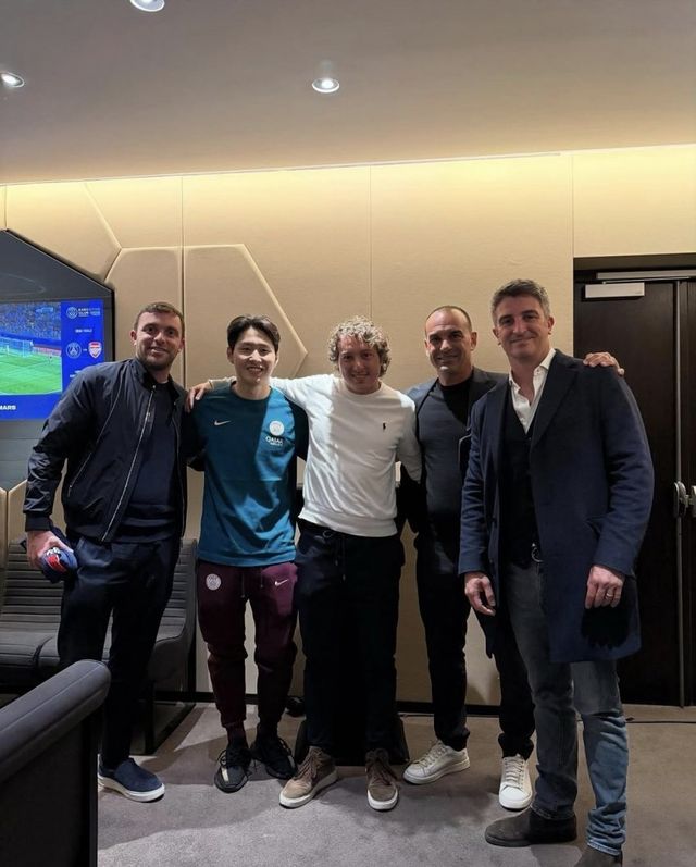로마노와 모레토는 이강인과 함께 이강인의 PSG 유니폼을 들고 사진을 찍었다.