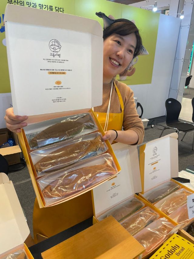 시선강탈 그 자체였다. 부산 ‘고등어빵’ 부스 앞을 지나가는 관람객 모두 눈을 휘둥그레 뜨면서 매대에 놓인 고등어빵을 몇 번이고 살펴봤다. 이날 새벽 싱싱한 고등어빵을 싣고 부산에서 상경했다는 이혜나 부산고등어빵 대표는 “관람객들이 지나갈 때마다 ‘이건 뭐에요?’라고 묻는데, 이렇게 뜨거운 관심을 받은 적이 없었다”며 함박웃음을 지었다. 고등어빵은 부산의 시어(市漁) 고등어를 모티브로 만든 지역 명물빵이다. 고등어가 실제로 들어가진 않았지만, 고등어에 함유된 오메가3가 듬뿍 들어가 있어 맛도 영양도 좋다고 자랑했다.