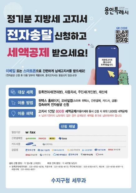 수지구 관계자는 “지방세 납부 일정을 미리 확인하고 모바일 전자송달서비스를 통해 보다 편리하고 효율적인 납세 환경을 누리시길 바란다”며 “앞으로도 다양한 납세자 중심의 서비스를 강화해 나가겠다”고 말했다.