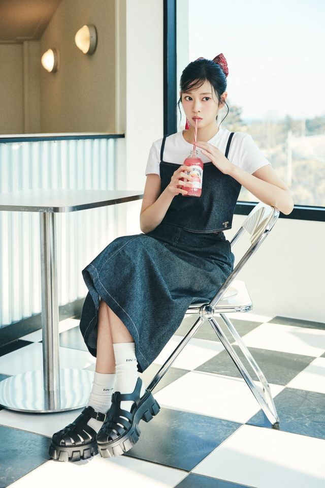 김민주는 화사한 컬러의 반팔 티셔츠에 벌룬 스커트를 매치해 감각적인 서머 캐주얼룩을 선보였고, 베이직한 투피스 셋업으로 사랑스럽고 여유로운 분위기를 자아냈다.
