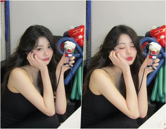 사진 속 장원영은 케이크를 컵에 옮겨 마치 건배를 하는 듯한 포즈를 취하고 있다. 특히 그는 블랙 색상의 민소매 원피스 하나만 입었을 뿐인데도, 독보적인 미모와 함께 남다른 아우라를 자랑해 눈길을 사로잡았다. 무엇보다 장원영은 완벽한 S라인 몸매를 자랑해 감탄을 자아내기도.