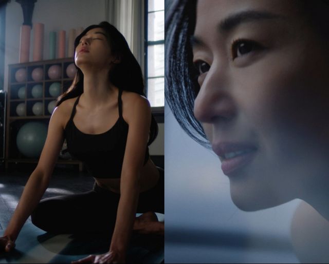 또 전지현의 스트레칭 모습과 청바지와 셔츠를 입고 역동적인 동작을 선보이는 남자 무용수의 모습도 물 흐르듯 전개된다. 운동과 일상의 경계를 허문 스타일리시한 룩의 활동성이 돋보인다.