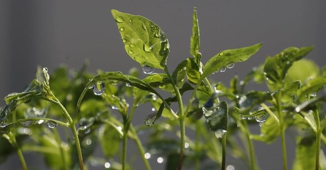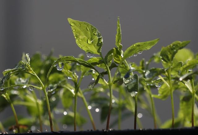 경기 화성시 경기도농업기술원에서 재배하는 연구시험용 고추 모종에 물방울이 맺혀 있다. / 뉴스1