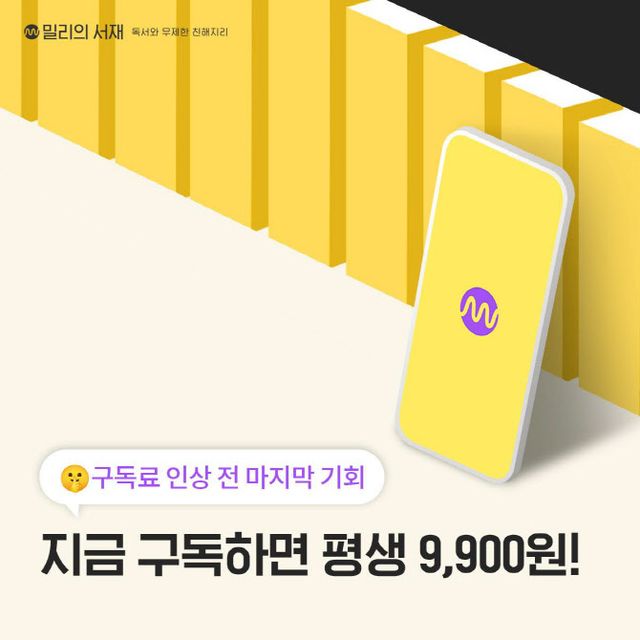 구독권 금액 조정은 신규 회원을 대상으로 한다. 새로운 구독료 정책에 따라 오는 6월10일부터 기존 9900원이던 전자책 월 정기 구독료는 1만1900원으로 기존 9만9000원이던 전자책 연 정기 구독료는 11만9000원으로 인상된다. 기존 밀리의서재 구독자 중 정기결제를 유지하는 이용자들은 계속해서 인상 전 구독료로 서비스를 이용할 수 있다.