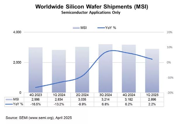 SEMI는 “공급망 전반에 걸친 재고 누적과 계절적 요인으로 전분기 대비 9% 가까이 출하면적이 감소했다”며 “레거시 디바이스 수요가 약세이고 재고 조정도 출하 둔화에 영향을 주고 있다”고 설명했다.