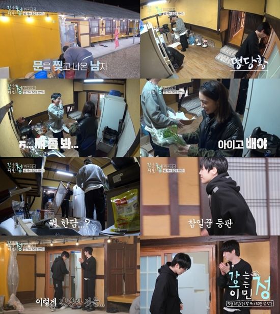 멤버들이 허우적대는 안재현의 모습을 발견하고 웃음을 터뜨린다. 특히 이민정의 호탕한 웃음소리가 인상적이다. 안재현이 문을 끼우지 못하자 김정현이 문을 척척 끼웠다. 안재현은 그런 동생이 놀라운 듯 박수를 친다.