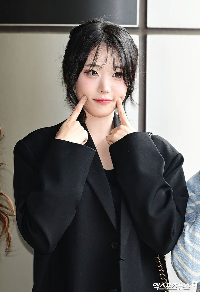 QWER 히나가 출국장으로 향하고 있다.