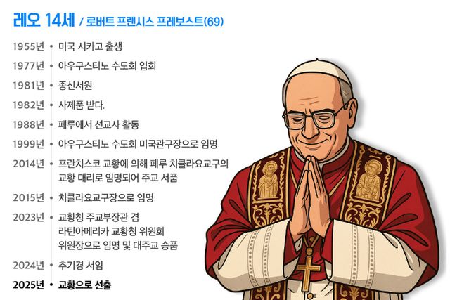레오 14세는 1955년 미국 시카고에서 태어나 아우구스티노 수도회 소속으로 사제의 길을 걸었다. 1982년 사제품을 받은 뒤, 1988년부터 11년간 페루 빈민가에서 선교사로 활동했고, 이후 페루 시민권을 취득했다. 2015년에는 치클라요 대교구의 대주교에 임명됐고, 프란치스코 교황의 신임 아래 교황청 주교부 장관까지 올랐다.