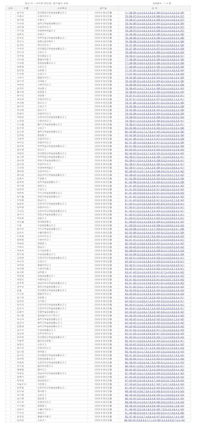 ▲여자부(여고-여중) 1.표송현 -10(우승), 2.정다원 -9, 3.박제희 -8, 4,유아현 -8, 5.박조은 -7, 6.홍수민 -6, 7.이유정 -5, 8.김연서 -5, 9.정소윤 -5, 10.윤예은 -4.