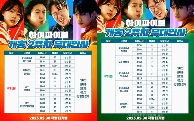(엑스포츠뉴스 김수아 기자) 영화 '하이파이브'(감독 강형철)가 6월 첫 주 무대인사를 확정했다.