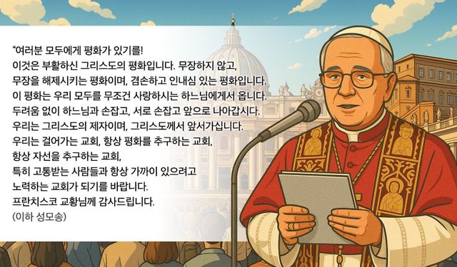 그는 이탈리아어로 전한 첫 ‘우르비 에트 오르비’(Urbi et Orbi·로마와 온 세계에) 강복 메시지에서 부활하신 그리스도의 평화를 강조하며, 고통받는 이들과 함께 걷는 교회의 모습을 그려 보였다.