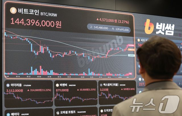 9일 오후 서울 빗썸라운지 강남점에 비트코인을 비롯한 암호화폐 시세가 나타내고 있다. 이날(현지시간 8일) 가상화폐 대장주 비트코인이 10만 달러선을 회복했다. 미국 가상화폐 거래소 코인베이스에 따르면 미 동부 시간 8일 오전 11시 59분) 비트코인 1개당 가격은 10만805달러에 거래됐다. 비트코인이 10만 달러를 넘어선 것은 지난 2월 2일 이후 처음이다. 2025.5.9/뉴스1