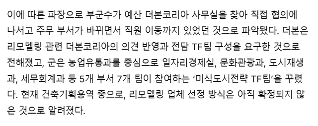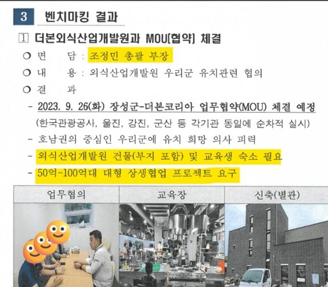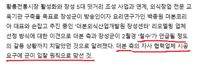 마찬가지로 더본은 장성군에도 같은 요구를 했고