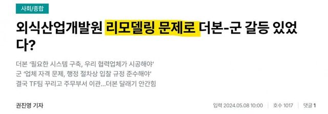 액수는 9억이고 더본이 입찰원칙을 준수하였는지는 알 수 없음.