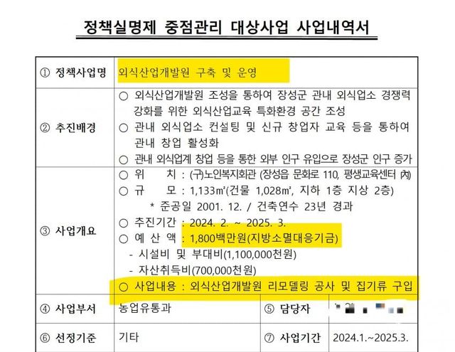 장성군은 지방소멸기금 18억을 땡겨 일을 진행하였음.