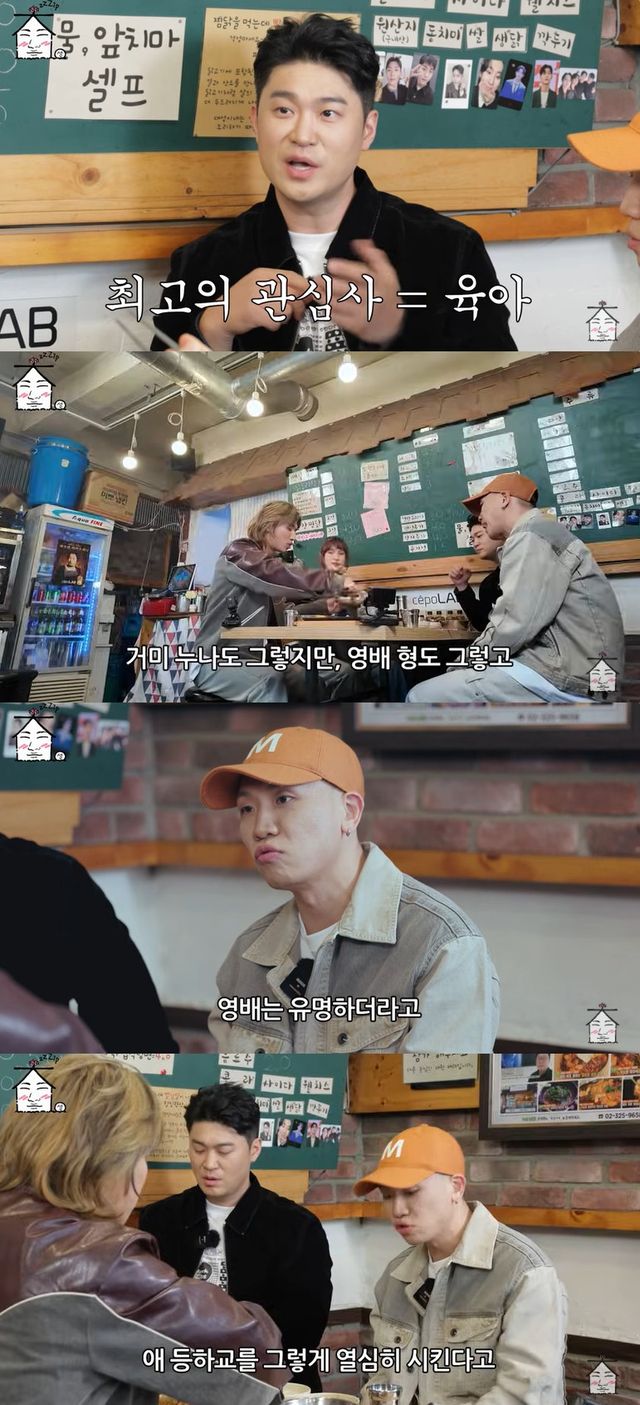개코가 "영배는 유명하더라. 애 등하교를 그렇게 열심히 시킨다고"라고 하자 대성은 "유명합니다"라며 태양이 좋은 아빠인 것을 인정했고, 최자는 "진짜 해보니까 좋은 것 같다"며 결혼을 추천했다.