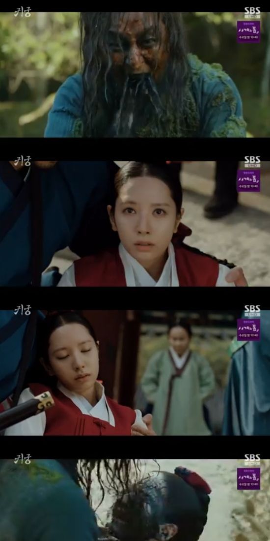 이날 방송에서 이정은 중전이 위독해지자 여리를 찾았다. 하지만 여리의 몸상태가 심상치 않았다. 수살귀가 쏜 살에 맞았기 때문. 결국 여리는 정신을 잃고 쓰러졌다.