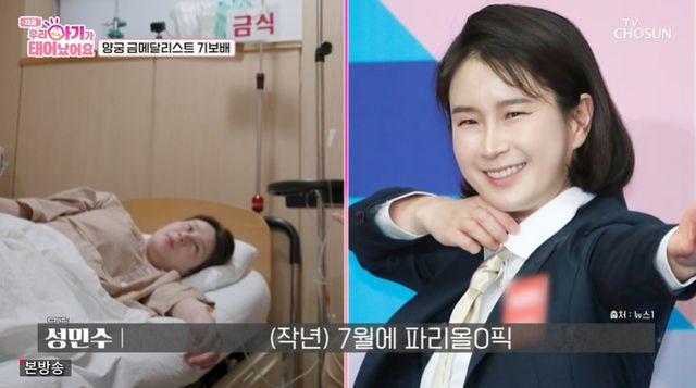 기보배는 "훈련하는 게 더 힘들다"며 출산 도중 전국체전에 나갔던 기억을 회상했고, 세 사람의 화기애애한 이야기 이후 기보배는 분만 유도를 받으며 본격적인 출산에 나섰다.