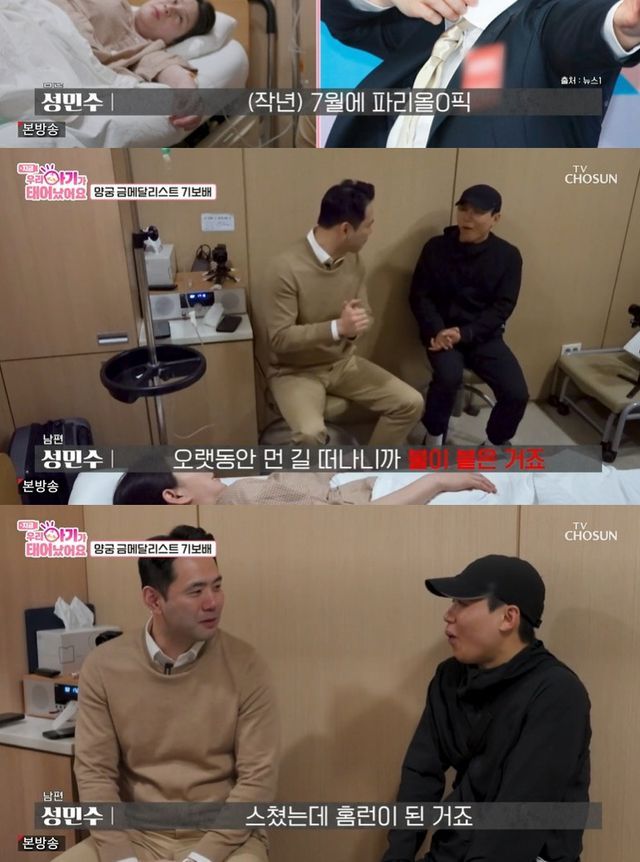 이어 남편은 "우리에겐 (자연임신, 자연분만이) 감사한 일이다. 원래 계획은 7월에 파리올림픽 해설 위원으로 가야 했다. 파리 갔다 와서 (둘째) 임신 계획을 갖자 하고 미뤘다. 오랫동안 먼 길 떠나니까 불이 붙었다"며 둘째 임신 계기를 밝혔고, 이어 "스쳤는데 홈런이 됐다"며 너스레를 떨었다.