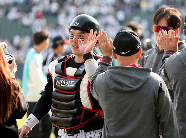 그는 이어 "이제 37경기를 치렀다. 아직 100경기 이상 남았다"라며 "남은 경기가 중요하다"라고 강조했다. 주전 안방마님으로 개인 성적과 다르게 팀 순위표는 매일 확인하고 있다.그는 “한화가 정말 무섭더라. 요즘 한화가 매일 이겨서 (1위 싸움이) 정말 힘들다"라면서도 “한화가 무섭게 치고 올라와도 흔들리지 않고 우리 것을 해나는 게 중요하다”라고 말했다.