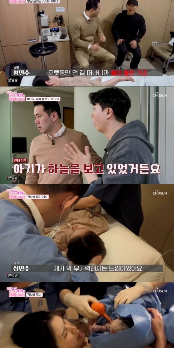 또 성민수는 “여보가 10개월 동안 고생했으니까 10년은 내가 고생하겠다”고 너스레를 떨며 아내를 웃게 했다. 긴박했던 출산 현장에 함께한 박수홍은 “이런 부모님을 만난 아기가 너무너무 행운이고 잘 자랄 거라고 믿는다”라며 아기의 탄생을 다시 한 번 축하했다.