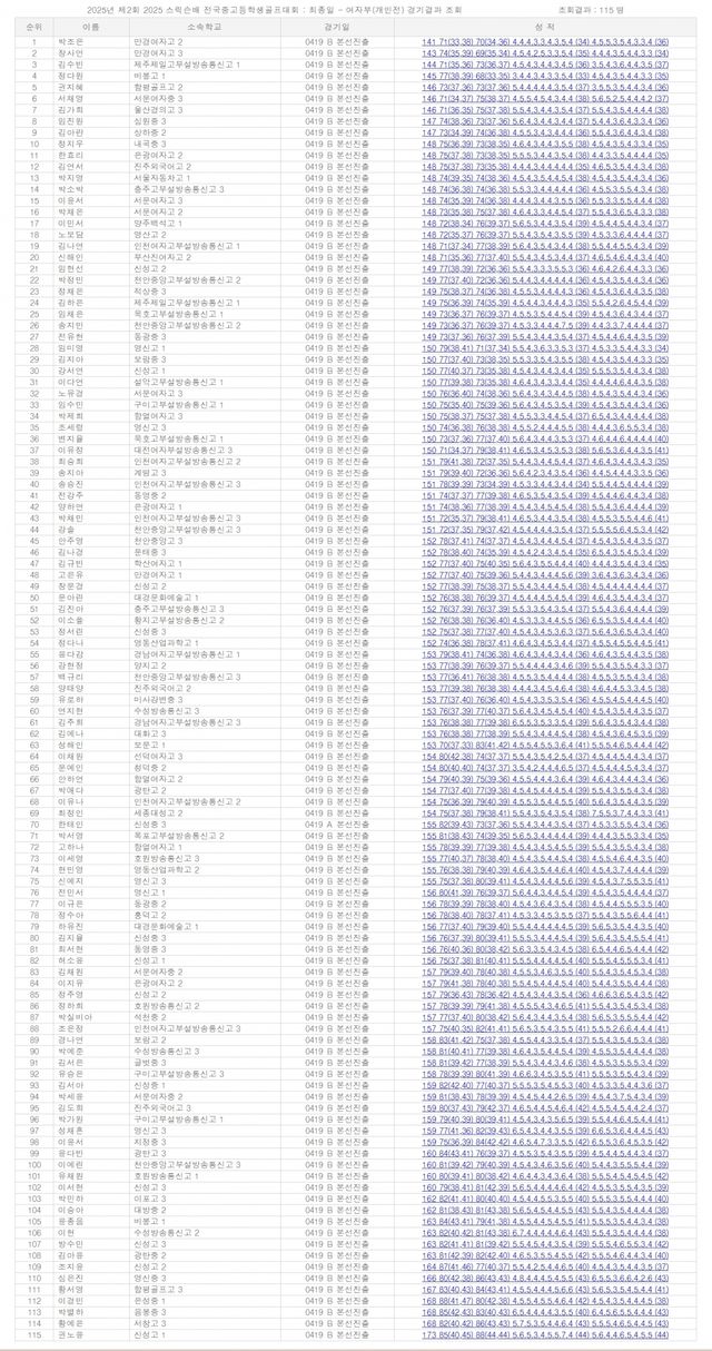 ▲여자부(여고-여중) 1.표송현 -10(우승), 2.정다원 -9, 3.박제희 -8, 4,유아현 -8, 5.박조은 -7, 6.홍수민 -6, 7.이유정 -5, 8.김연서 -5, 9.정소윤 -5, 10.윤예은 -4.