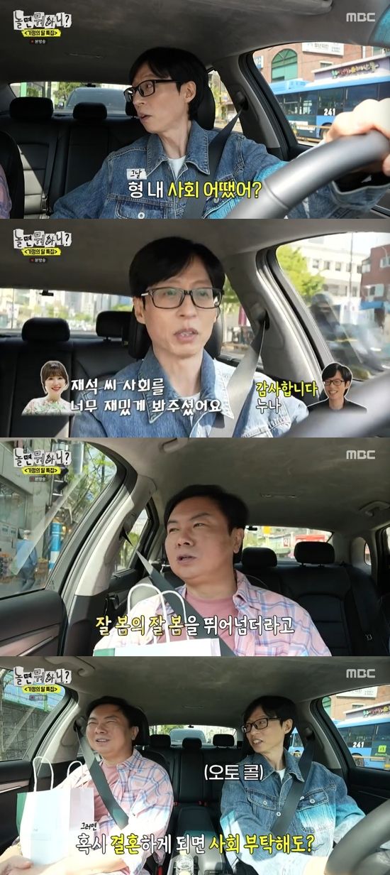 임원희는 "나는 그날 (유재석이면) 당연히 잘 보겠지 했는데 잘 봄의 잘 봄을 뛰어넘더라 역시"라 감탄했다. 유재석은 "내가 예식 사회 격조 있게 잘 본다"고 흐뭇해했다.