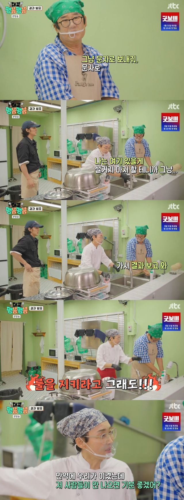 불 보듯 뻔한 결과에 최양락은 "문자로 보내달라"면서 "나는 여기 있겠다. 설거지 마저 할 테니까 결과 보고 와라"고 결과를 회피했다.