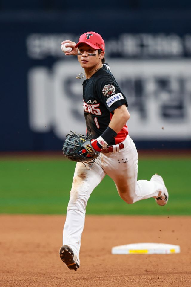 KIA는 2-0으로 앞서다 2-2로 추격당한 8회초 한준수의 볼넷과 상대 2루수 정준재의 실책으로 무사 1, 2루를 만들었다. 이어 박찬호의 3루수 앞 희생 번트로 주자를 2, 3루에 보냈다.