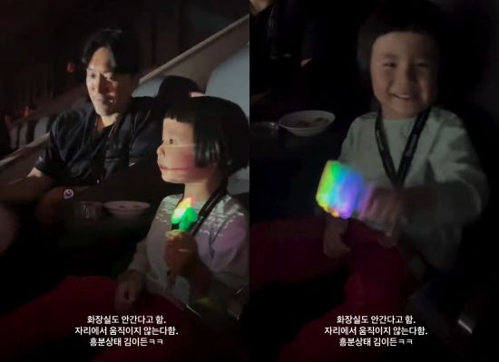 영상 속에는 아빠 김민준의 옆에 앉아 홀린 듯이 삼촌의 무대를 바라보는 이든 군의 모습이 담겨 있다.