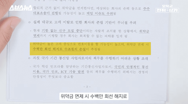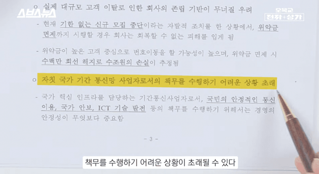 '위약금 면제하면 국가 기간 통신망 사업자로서의 책무를 수행하기 어렵다'