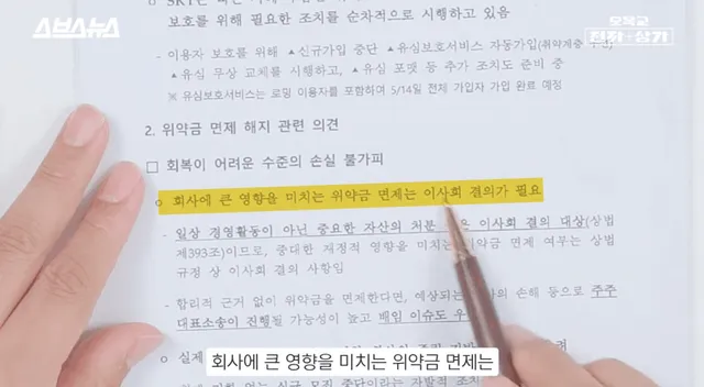 리적 근거 없는 위약금 면제는 이사회 결의가 필요하며 이를 무시하면 배임이다