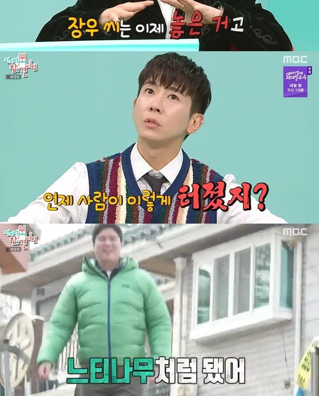 브라이언은 데뷔 전부터 이장우를 봤다며 "언제 그렇게 바꼈냐. 볼 때마다 '언제 사람이 이렇게 터졌지?' 생각했다. 식탐이 터진 거다"고 거들었다. 전현무는 "얼마 전에 봤는데 목이 아예 없어졌다. 통목이 됐다. 느티나무처럼 됐다"고 말해 웃음을 자아냈다.