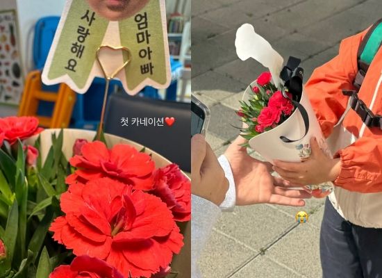 나혜미는 11일 자신의 SNS 스토리에 "첫 카네이션", "고사리 같은 손으로"라는 멘트와 함께 여러 장의 사진들을 게재했다.
